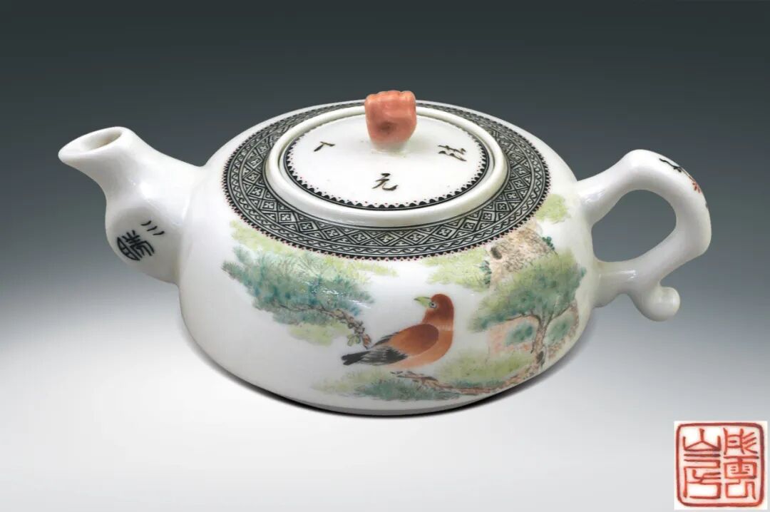 32 民初 淺降彩山水紋酒壺