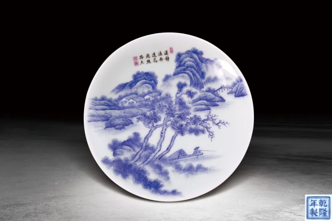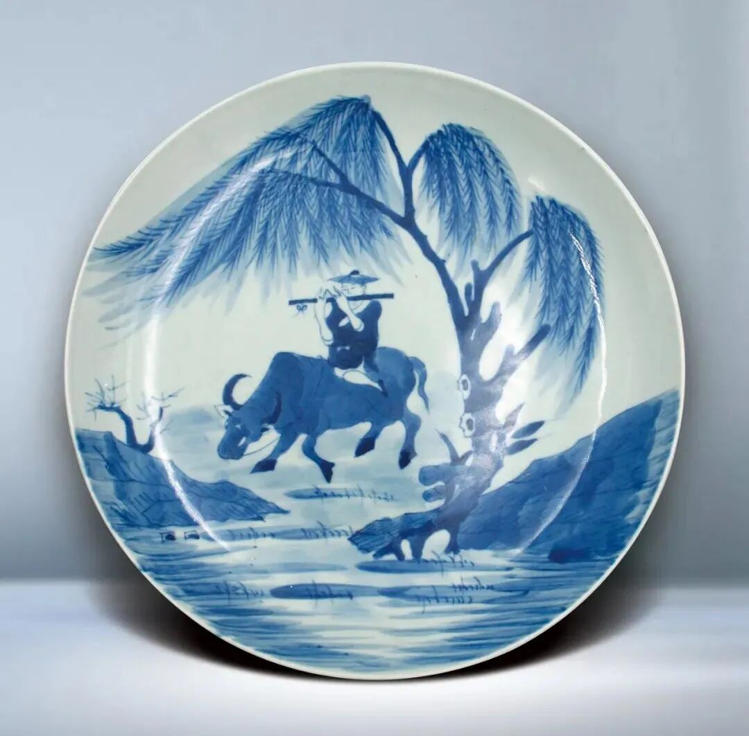 48 清 青花牧童放牛圖大碟