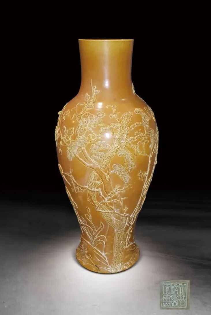 29 清道光 鱔魚黃釉雕瓷花鳥紋瓶