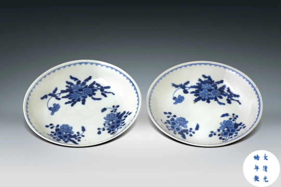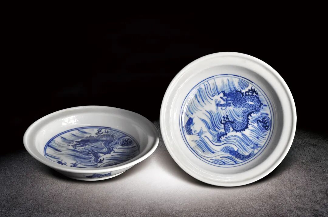 38 清 青花海龍紋小碟一對