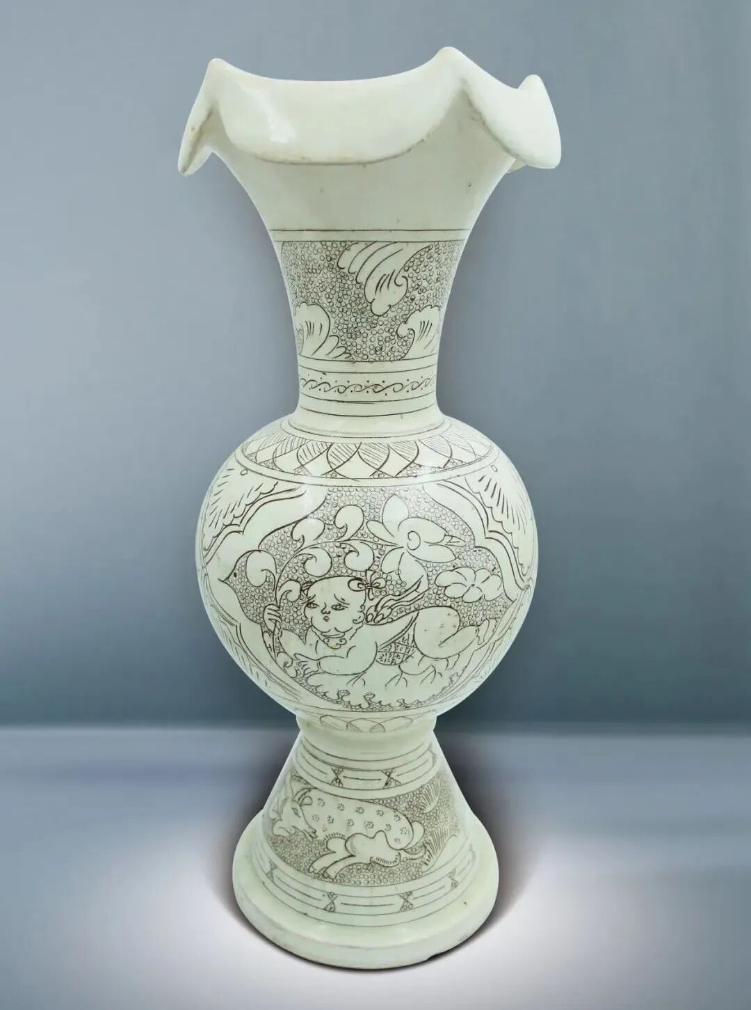 31 金 珍珠地劃花嬰戲紋花口瓶