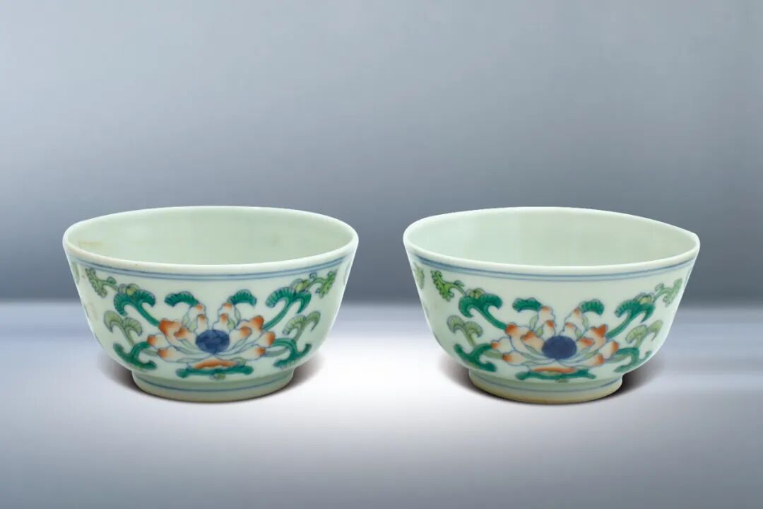 41 清 鬥彩花卉紋杯一對