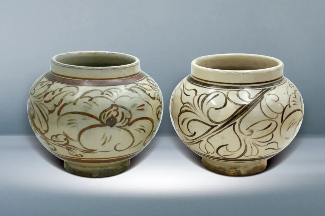 34 元 磁州窯花紋罐一對