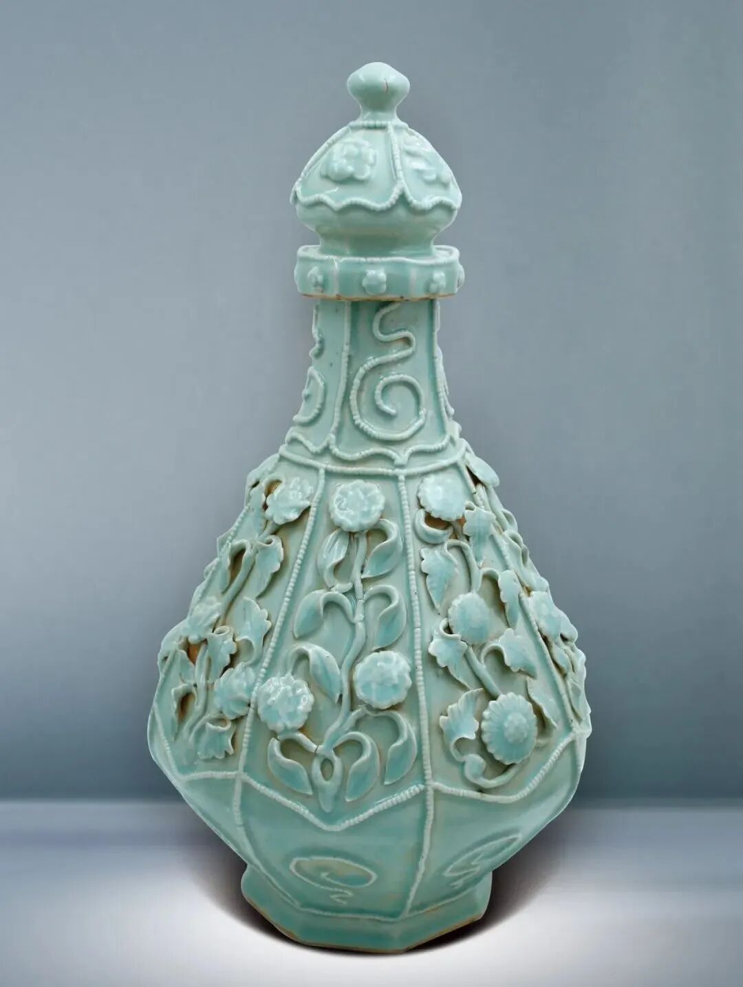 25 宋 湖田窯 影青刻牡丹花八棱梅瓶
