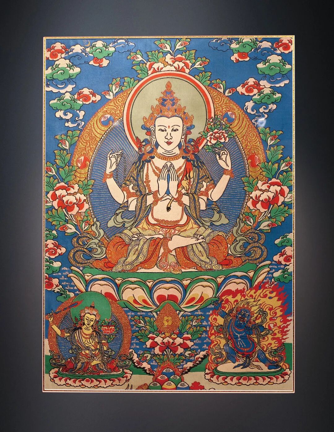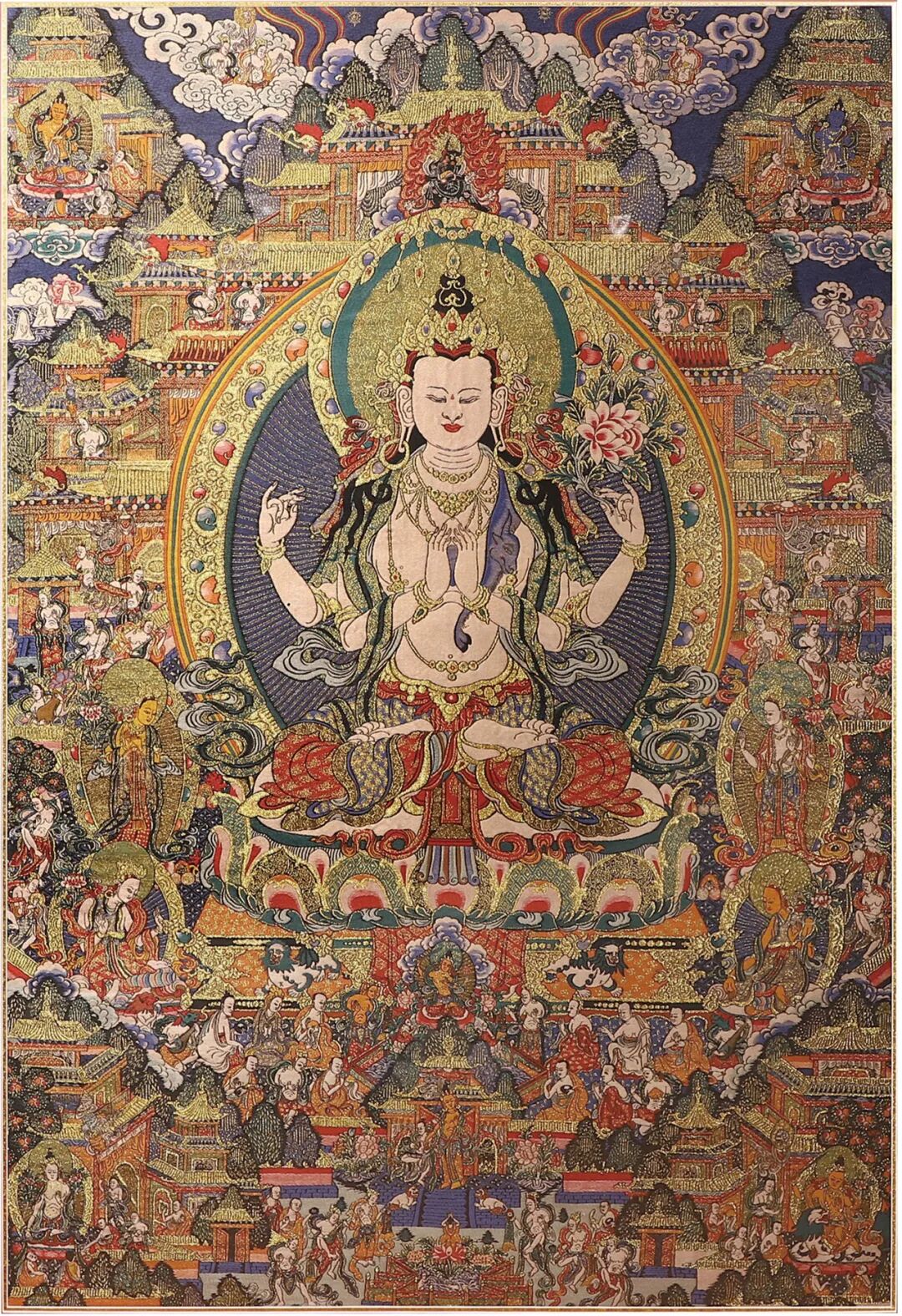 228 清 刺繡唐卡四臂觀音像