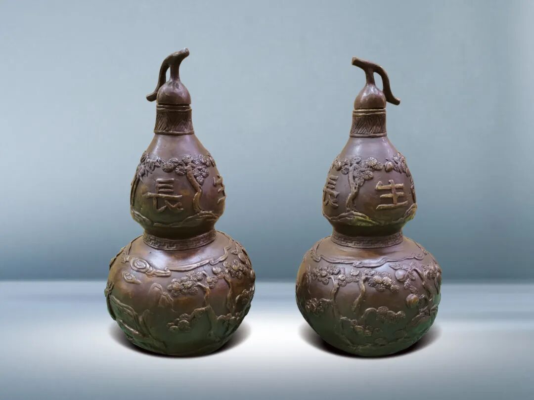 241 清 銅長生鹿鶴松竹圖葫蘆瓶一對