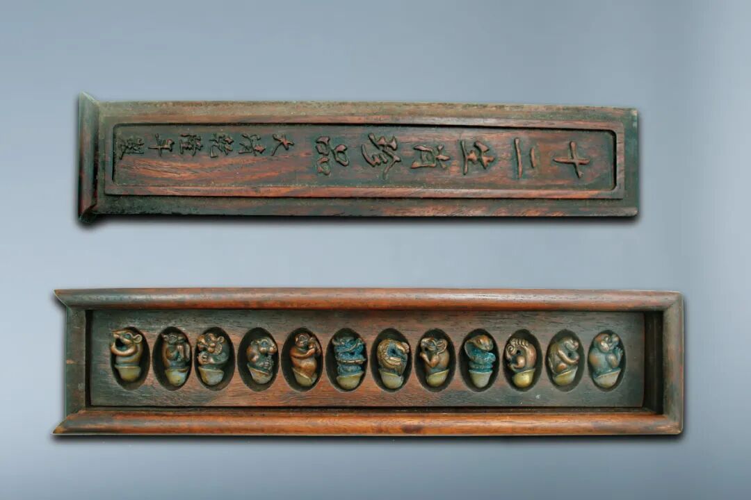 246 清 銅十二生肖帶乾隆花梨木盒