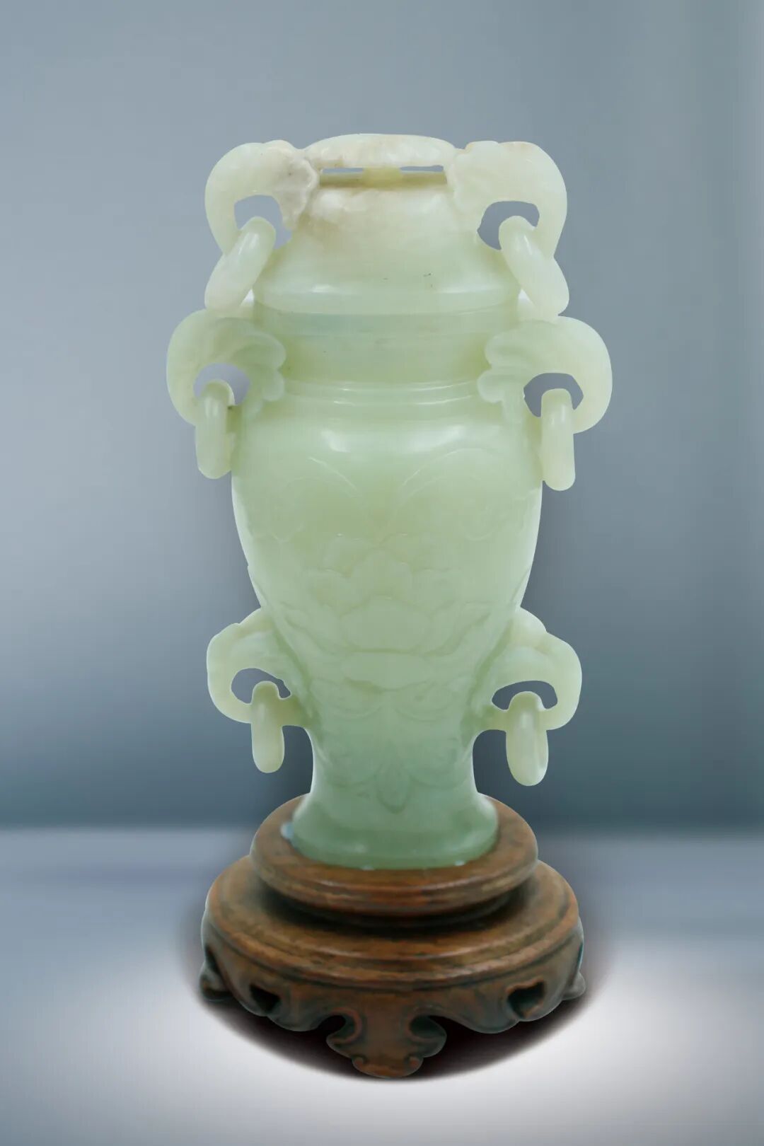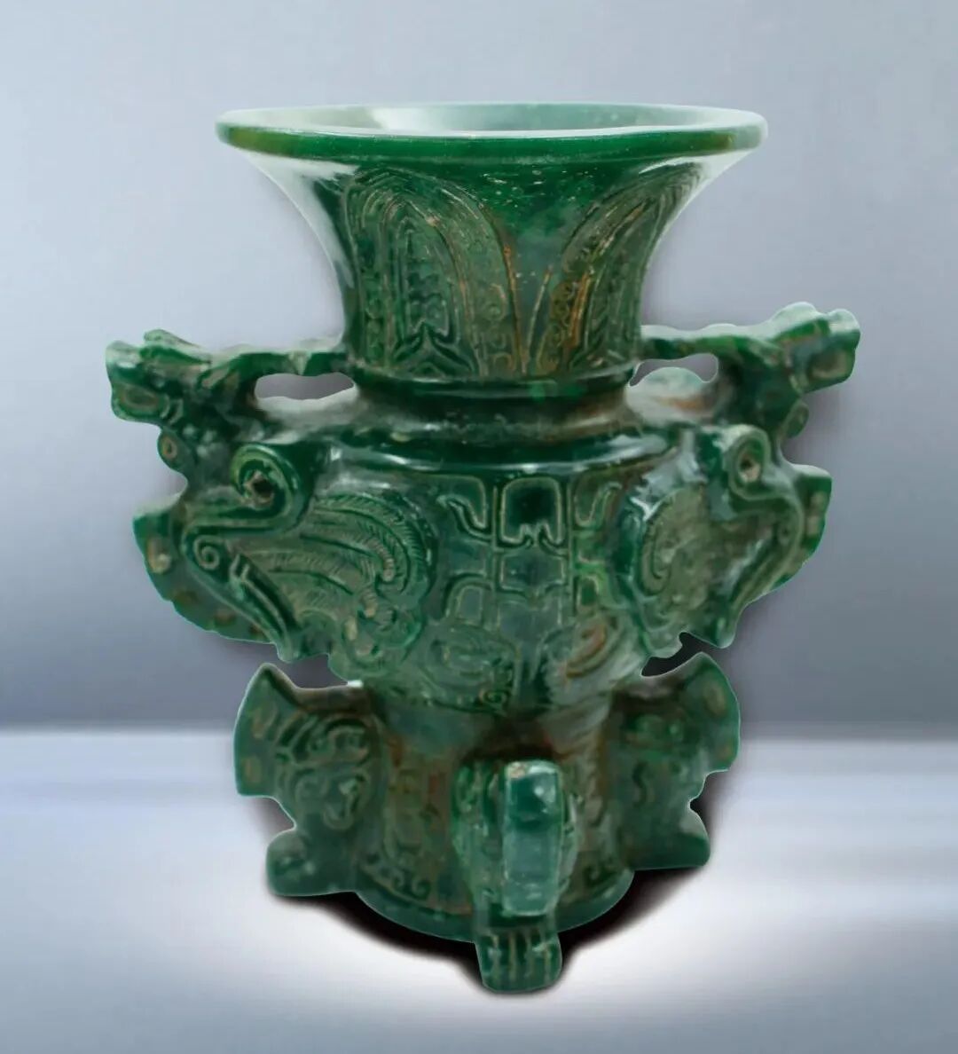 20 明 青釉印花紋雙繫花觚