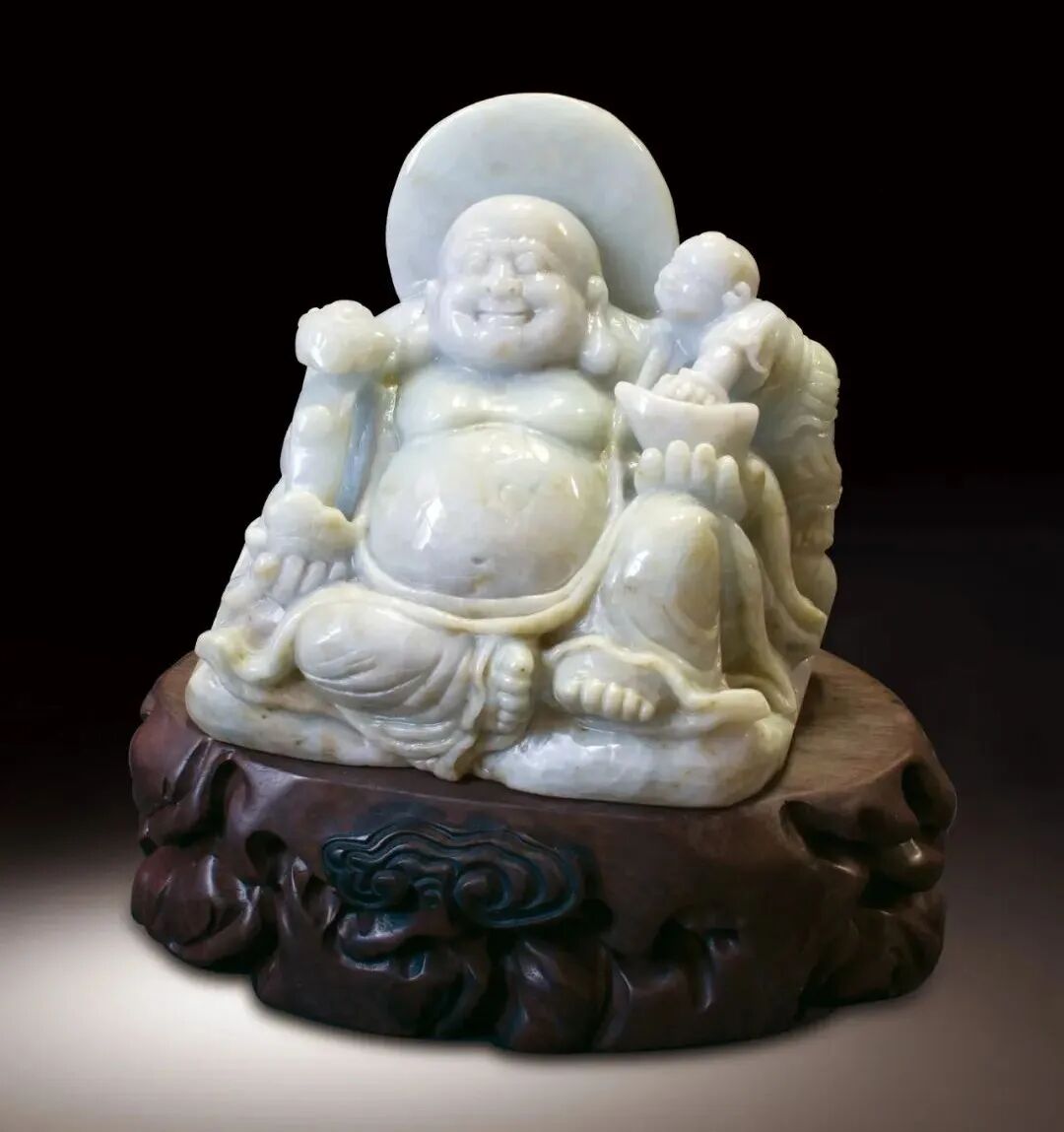 215 清 角雕福祿壽笑佛牌