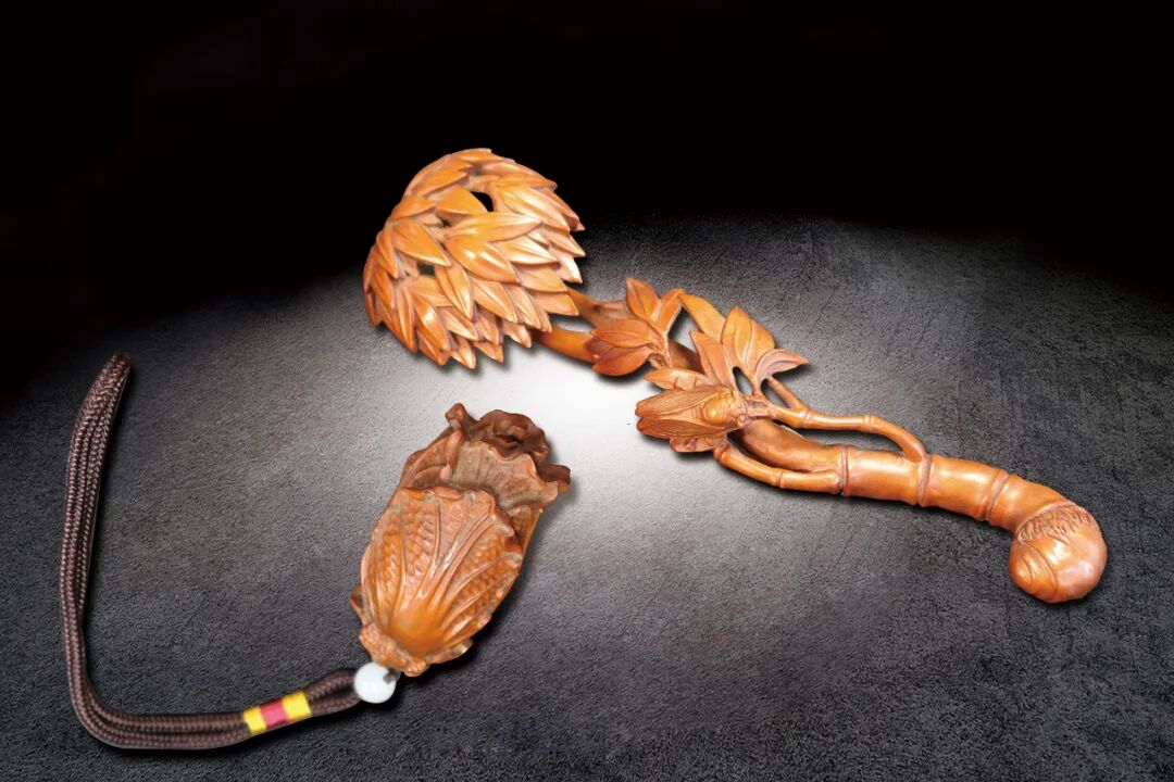 201 民國 黃楊木如意擺件一組兩件