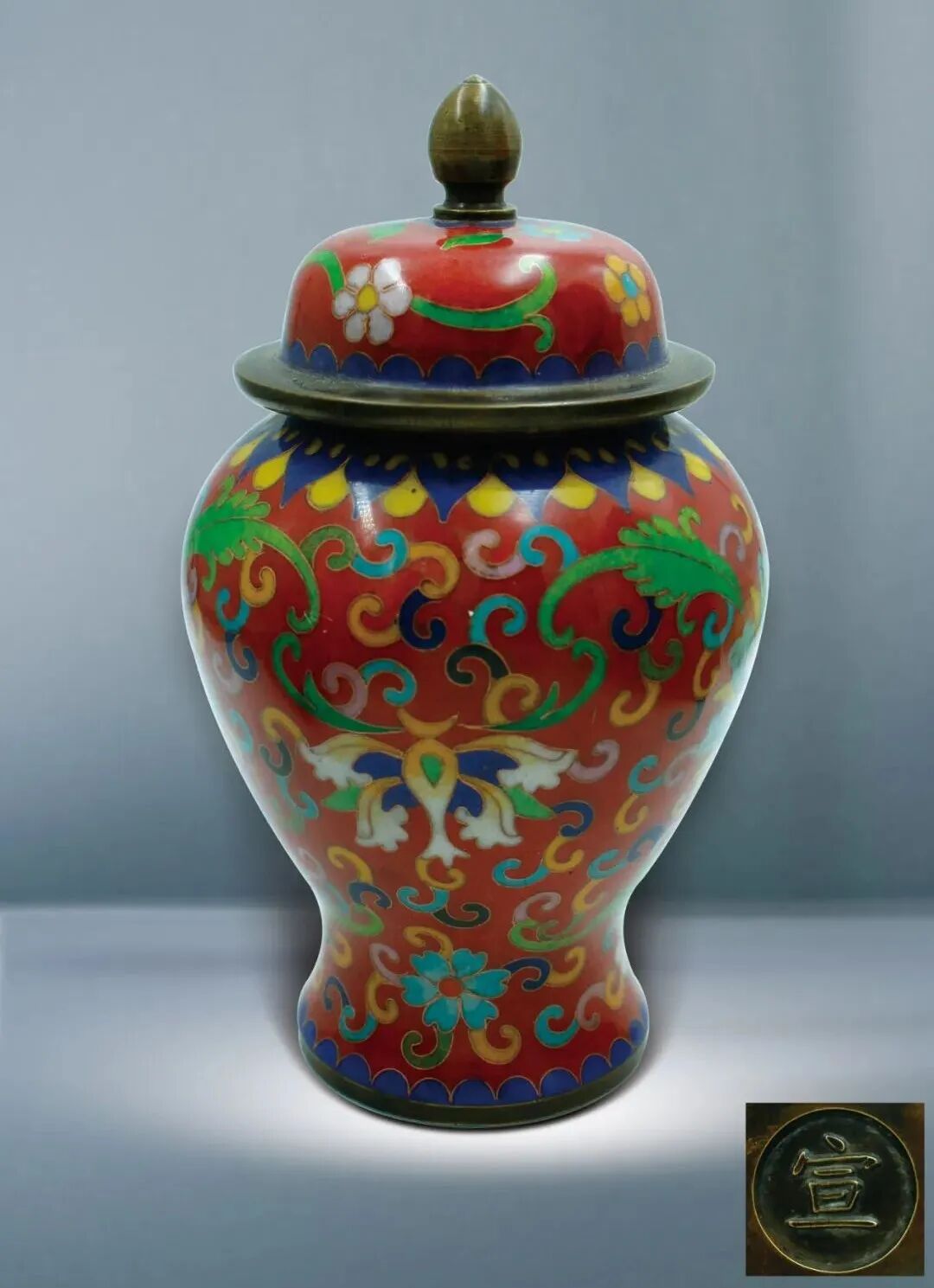245 民國 銅胎掐絲琺瑯蓋瓶