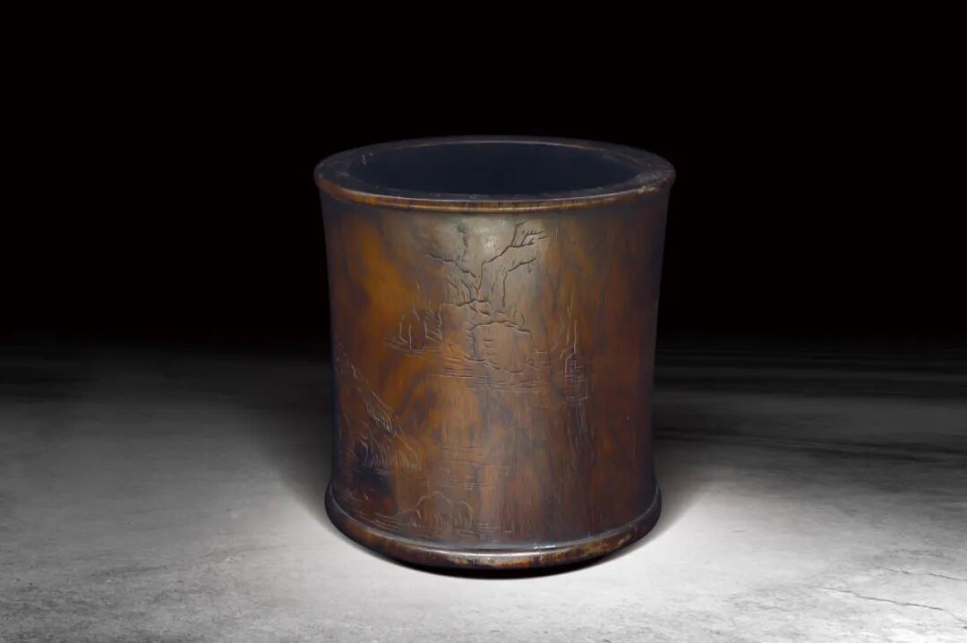 200 清 黃花梨刻山水詩文筆筒