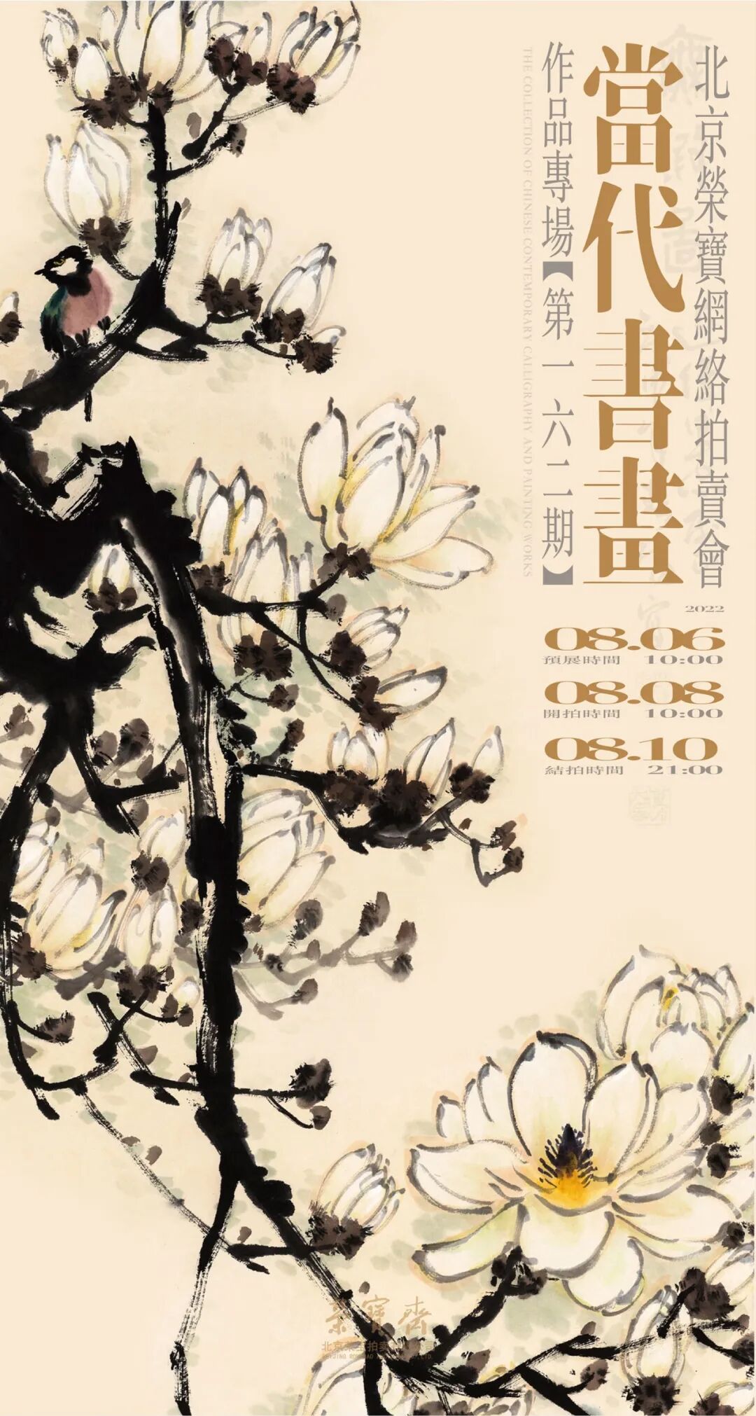 北京荣宝·当代书画作品专场网络拍卖会(第一六二期)将于8月6日10:00—8月8日10:00开启线上预展,并于8月8日10:00开拍,8月10日21:00结拍。