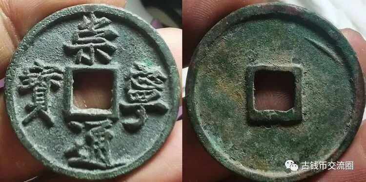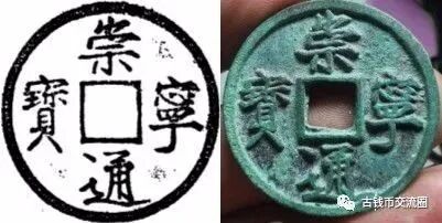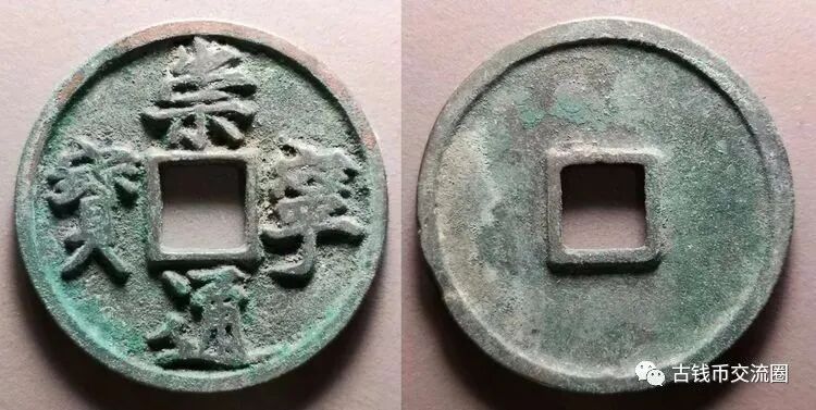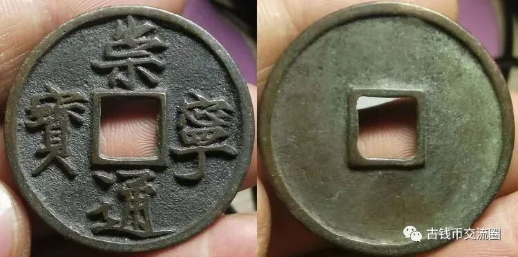 进崇类是以崇字进为主要特征来区分的,其形制特征面郭呈梯形,四字离郭,其版别特征较难细分,好版别不多,级别不高,价格便宜,不咋受人待见!
