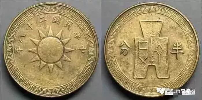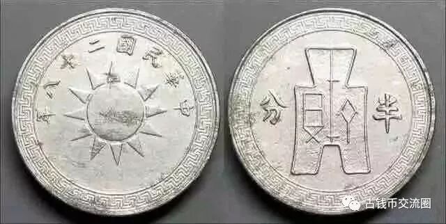 民国的一种辅币,该币铸造时间达四年之久,即民国二十五至二十八年。目前所见有铜、铝、铅等各种材质。