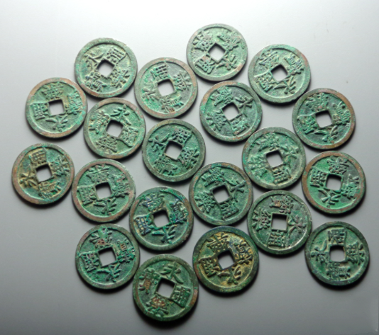 例:唐代天宝年间,全国有99炉铸钱,合计年铸钱3.27亿文。北宋元丰年间,铜钱有17监,每年铸钱506万贯;铁钱有9监,每年铸钱113.9万贯,合计年铸钱61.99亿文。而明初洪武元年铸钱仅0.89亿文;洪武八年铸钱较多,年铸1.99亿文;洪武二十六年全国开炉325座,年铸钱也未超过2亿文。而且,洪武钱时铸时停,并非年年都铸,就是在铸造的年份,也未按定额造足。