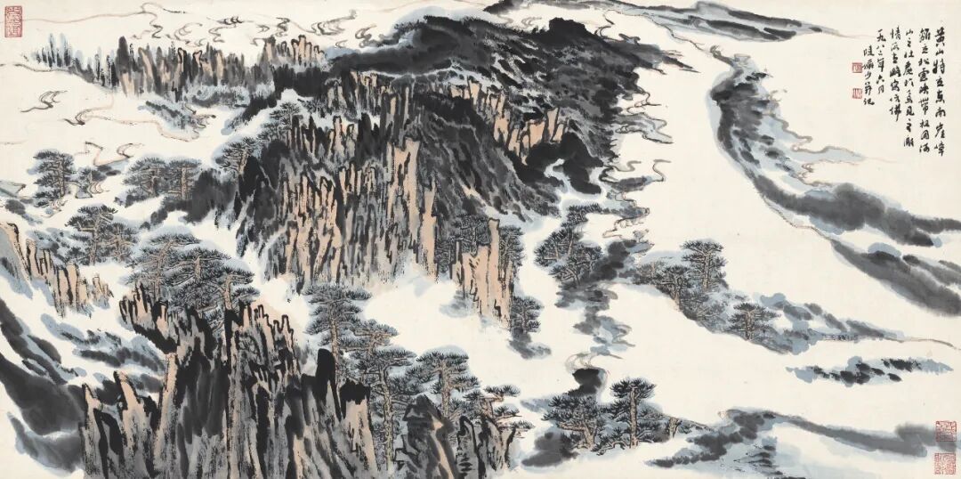 说明:黄山为五岳之一,是陆俨少最擅长描绘的题材之一,亦是其诗文中时常歌咏的对象,为此,他曾三上黄山,并从中悟得“留白之法”。