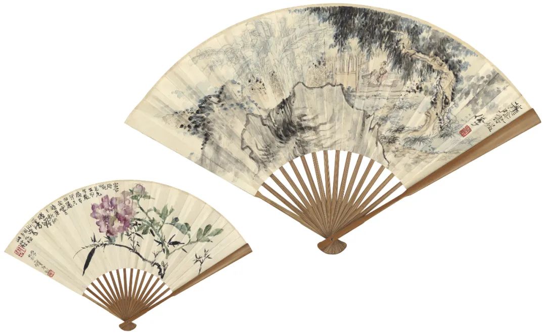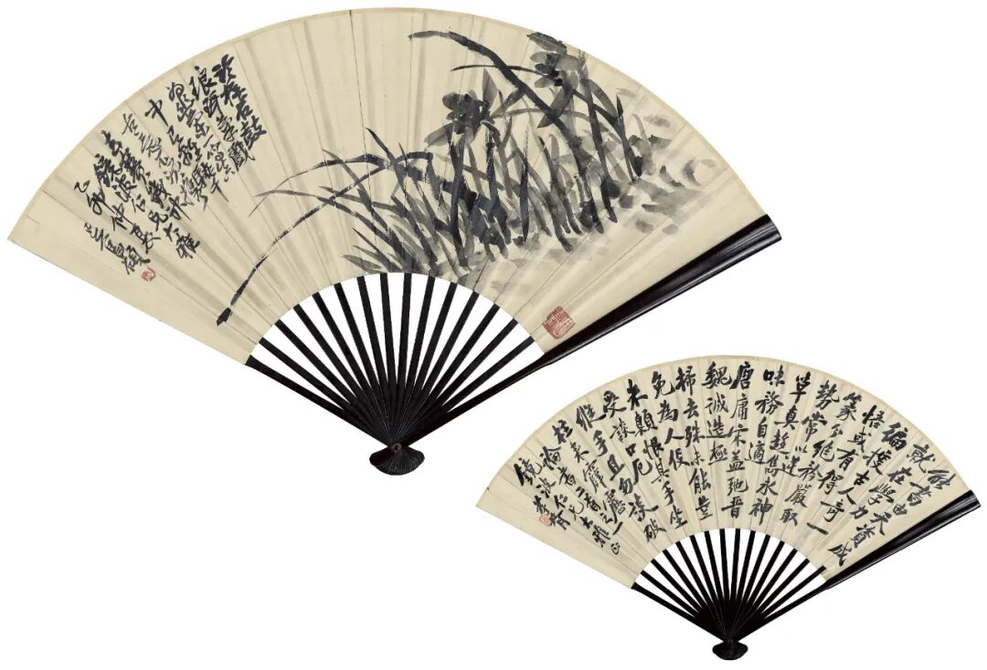 吴昌硕(1844~1927)、郑孝胥(1860~1938)为朱镜波作 墨兰书法扇