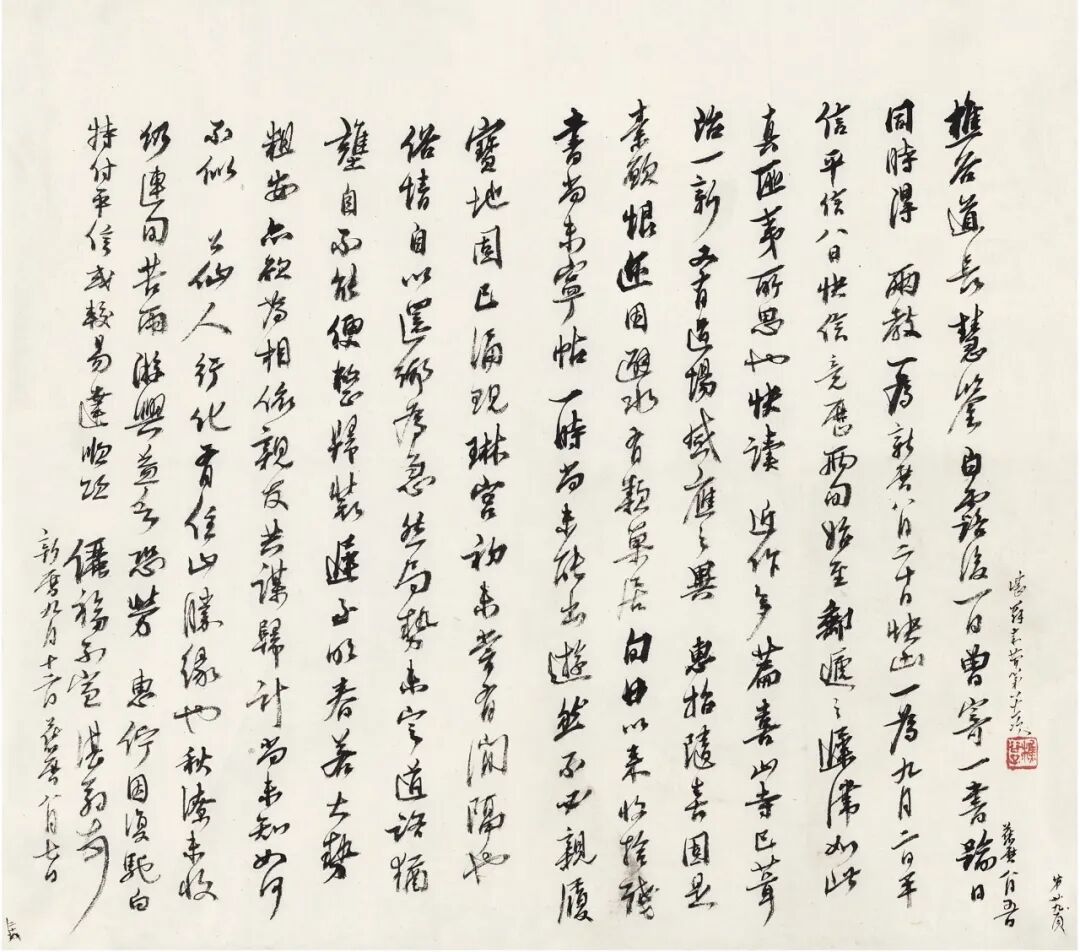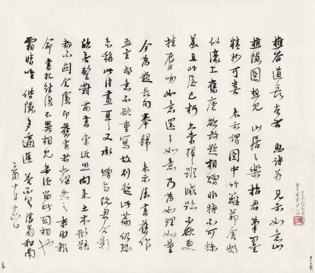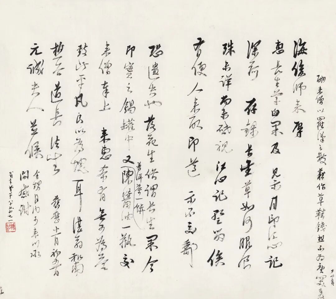 黄宾虹曾论画之邪正,认为在邪正之外,“又有一种粗头乱发,不守绳墨,细视之则气韵生动,寻味无穷,是为非法之法。惟其天资高迈,学力精到,乃能变化至此。”可谓是对“粗头乱发”的石鲁的精准描述。
