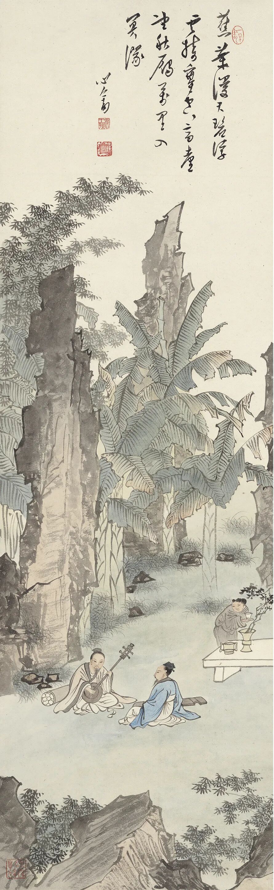 陆俨少(1909~1993)、程十发(1921~2007)蕉阴书屋图·富贵平安图