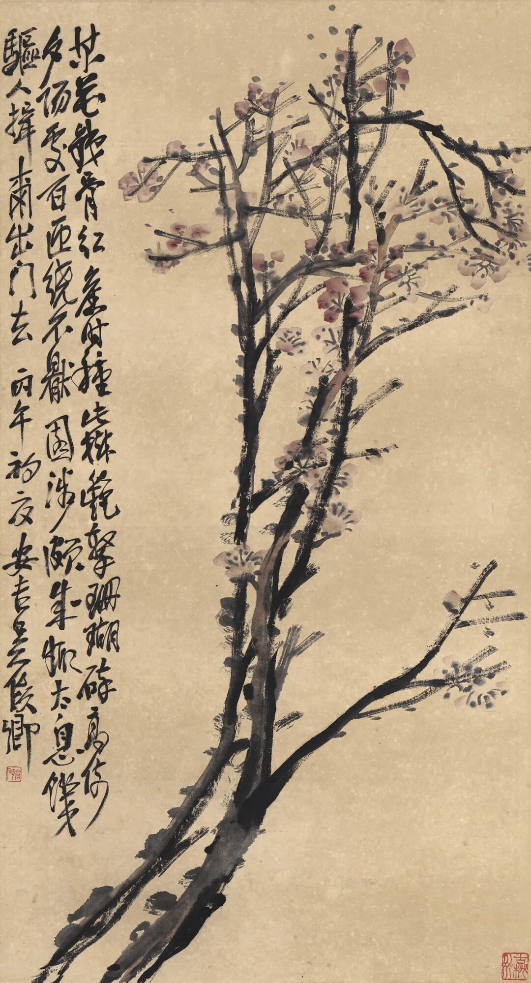 说明:本幅题款中李晴江为扬州八怪之一的李方膺。吴昌硕推崇李方膺的没骨画,而李之没骨又从徐青藤得来,故所谓一脉相承。