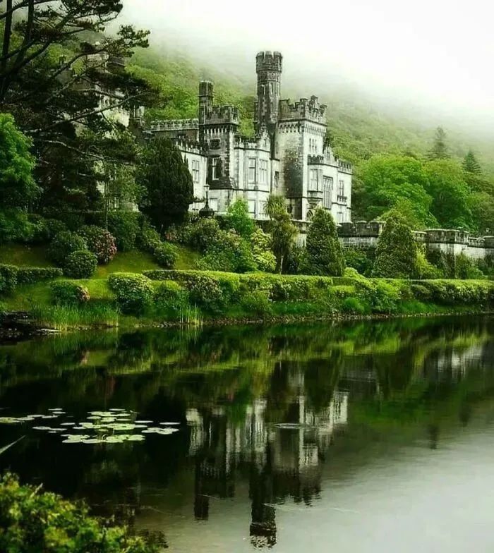 凯尔莫尔修道院在雾中,康尼马拉,戈尔韦,爱尔兰
