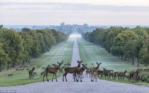 在一条 2.64 英里长的大道尽头,呈现出温莎城堡的壮丽景色