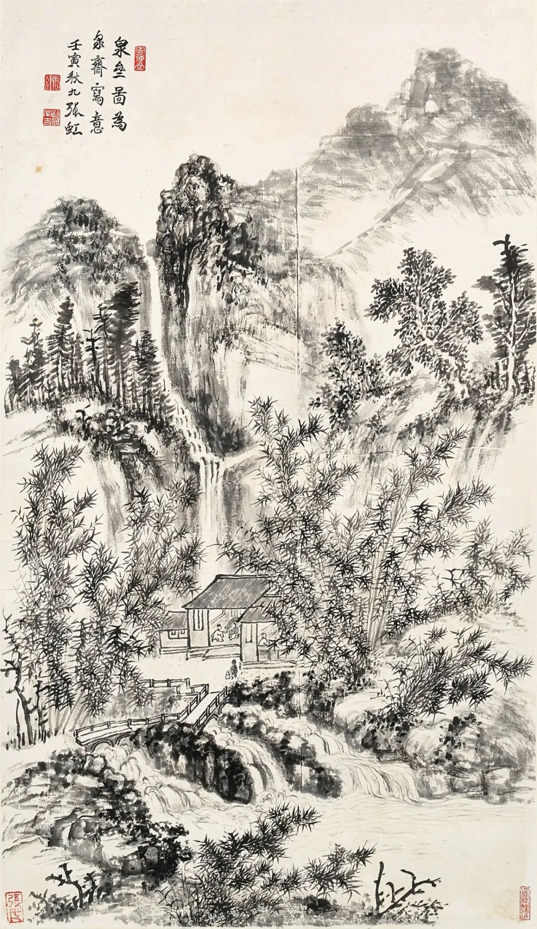 上款「泉斋」即麦泉,香港装褙名师,画坛中人多委其装潢画作,张大千尤赏其手艺,在港以至离家千里,笔下佳作装池多委付于他,如梅云堂藏〈拟古十开册〉即经他处理。一九七一年,张大千绘〈泉斋图〉为赠,该画一直置于其装裱店中。