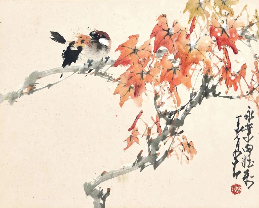 陈树人、赵少昂、关山月、杨善深、黎葛民牵牛麻雀
