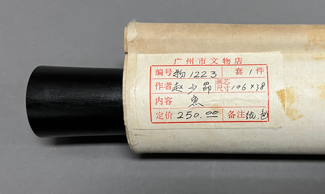 来源:广州市文物店旧藏。画背贴文物商店标签,注明编号、尺寸、定价「250(人民币)」。