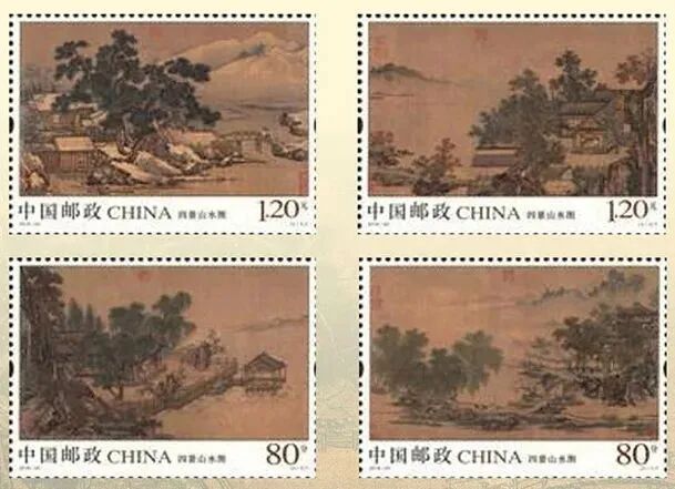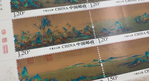 《诗情画意》涵盖山水名画珍邮,有《千里江山图》《清明上河图》《五牛图》《姑苏繁华图》等等。于小小邮票间,俯观远山,静送流水,历代文人情思缓缓淌过,道尽生活广度、生命深度。