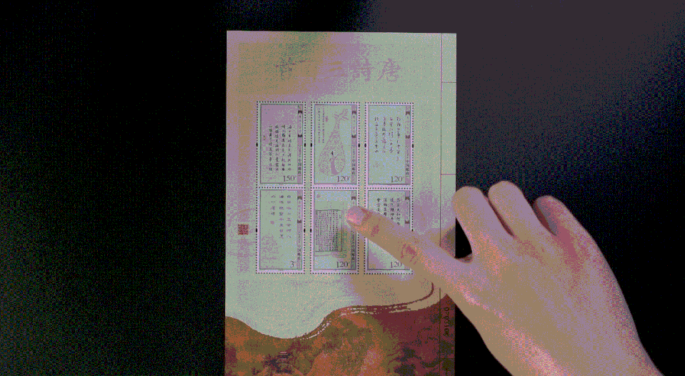 邮票内缩印了微雕的313首唐诗,共25000 余字,每个字的直径高只有0.4毫米,这是目前运用到邮票中最小、最细的雕刻、也是容纳信息量最大的邮票,需用十倍放大镜才能看清字迹。