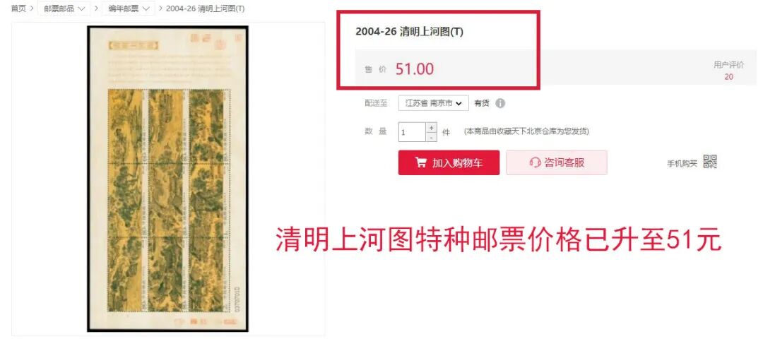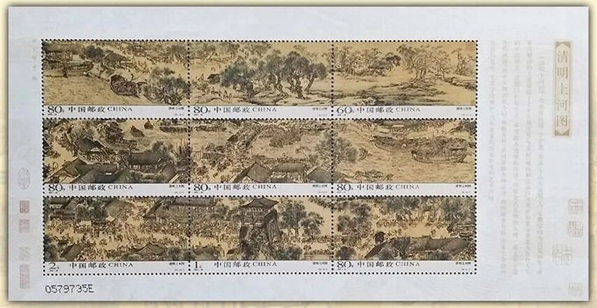 《清明上河图》特种邮票由国家邮政局发行于2004年10月18日,一套九枚,总面值为8.60元,每一枚的发行量都只有1020万枚!非常稀有!