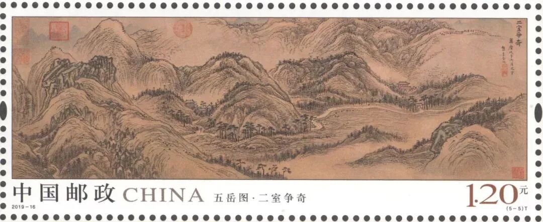 中国邮政定于2019年8月3日发行《五岳图》特种邮票。邮票图案名称分别为: