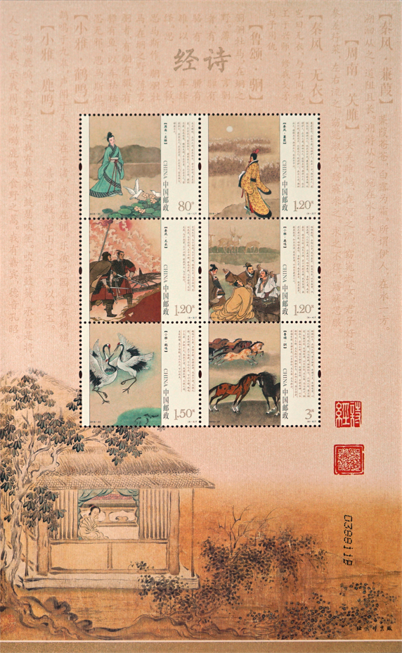 中国邮政于2018年9月8日发行《诗经》特种邮票1套6枚。