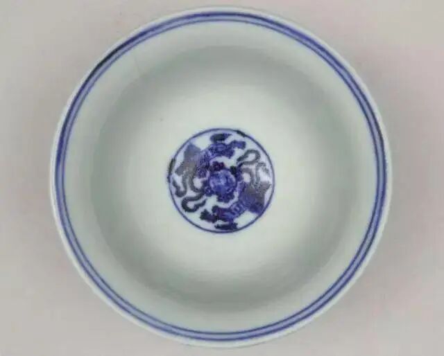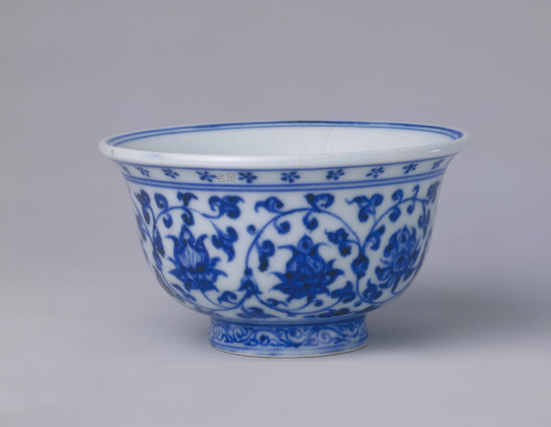 明末谷泰撰《博物要览》记载:“若我永乐年造压手杯,坦口折腰,砂足滑底,中心画有双狮滚球,球内篆书‘大明永乐年制’六字或四字,细若粒米,此为上品。鸳鸯心者次之,花心者又其次也。杯外青花深翠,式样精妙,传世可久,价亦甚高。”