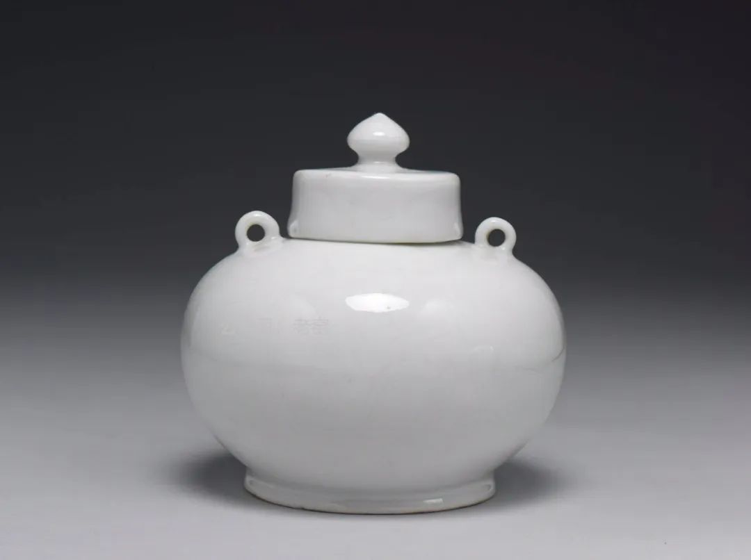 明 永樂 甜白四季花卉紋雙繫蓋罐