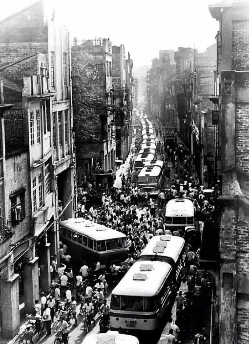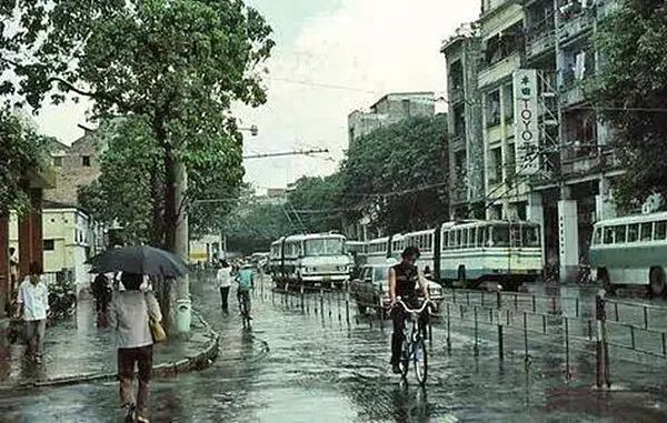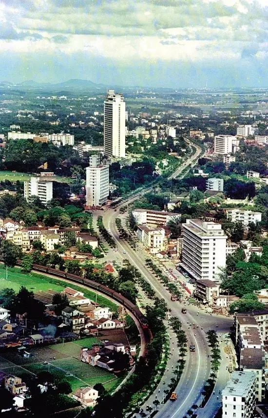 1978年春季的广州市环市路,远方是当时最高的建筑物白云宾馆。