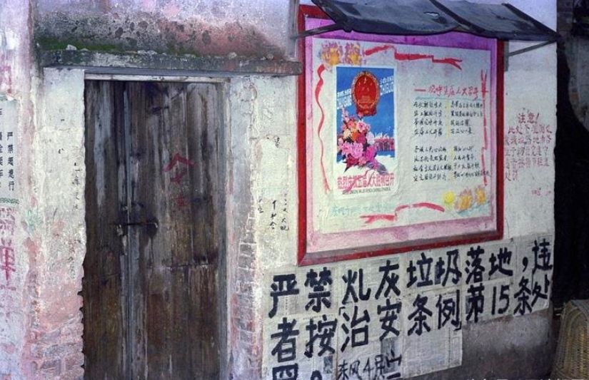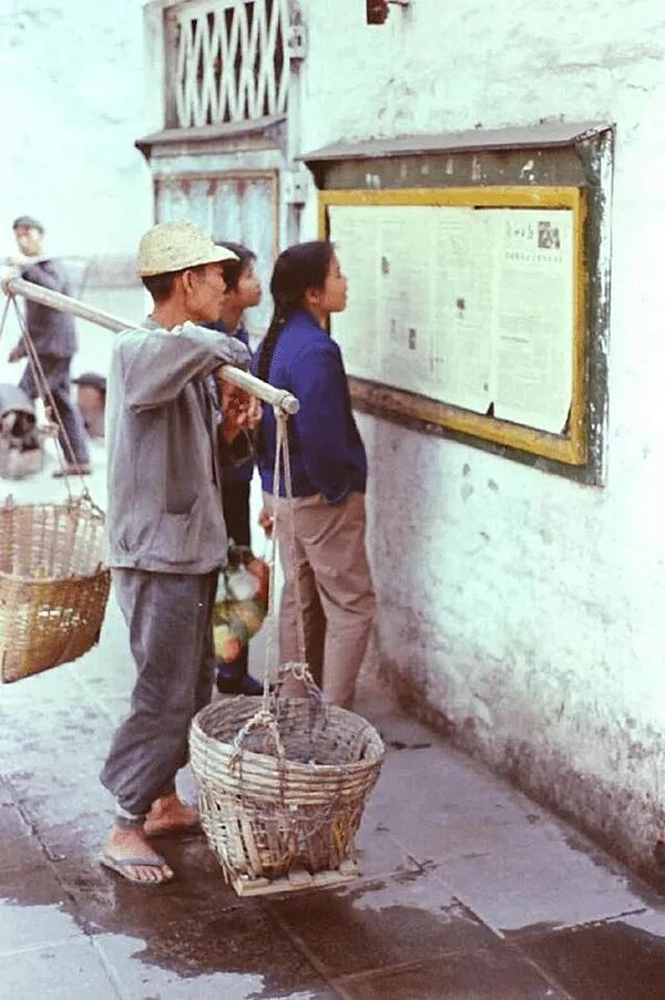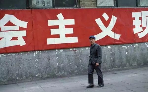 街头宣传栏,中间的标题为“各尽所能,按劳分配”。