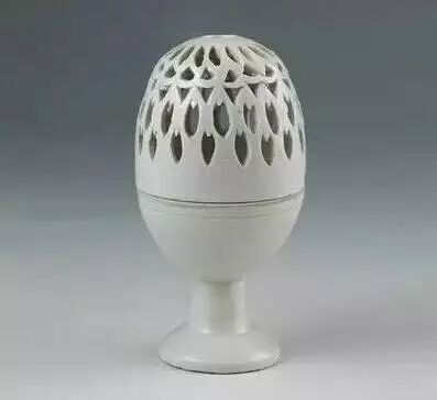 细白瓷在介休窑器物品种产量最大,而且品种多,质量高。其品种有碗、盘、盏、洗、盒、瓶、炉、香薰、小盂、注壶、玩具、装饰品等。在施釉方面,一反粗白瓷多施釉不及底的做法,多数施满釉。器物制作规整,胎质多数坚致细腻,釉层较薄,且细腻匀净,少有类似定窑泪痕的现象。支烧采用三支钉、垫砂烧造、小部分为四支钉。