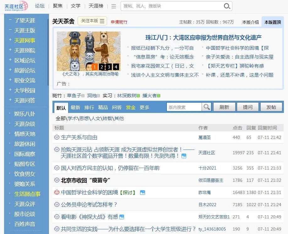 以关天茶舍为代表的天涯社区论坛