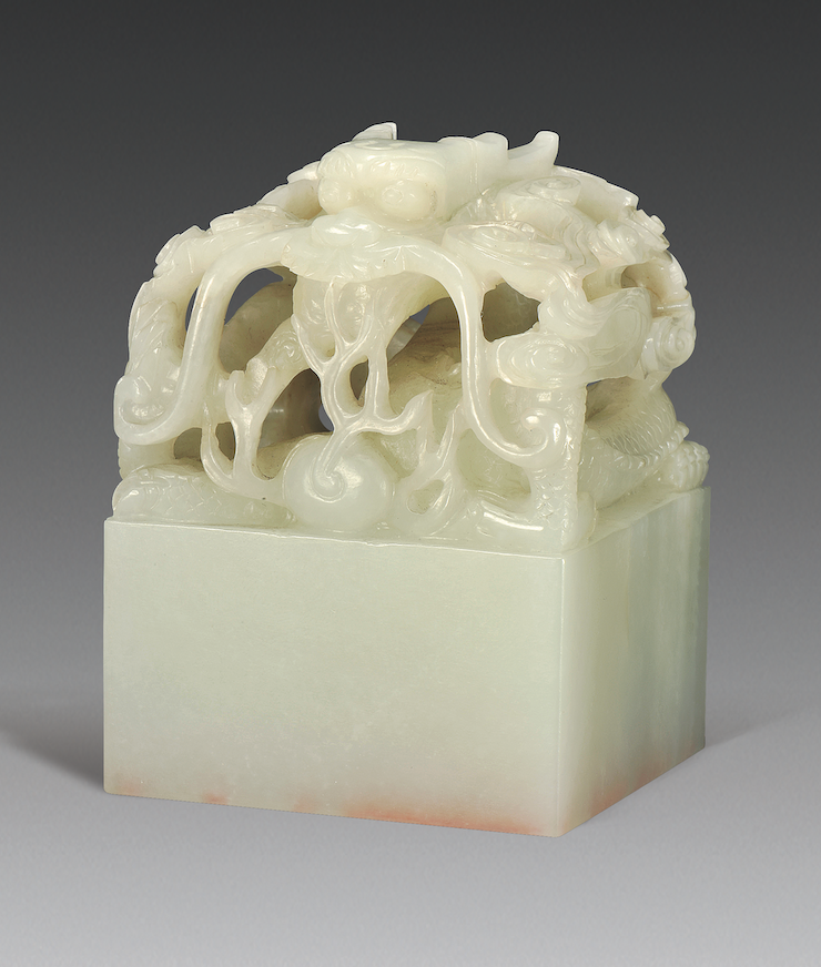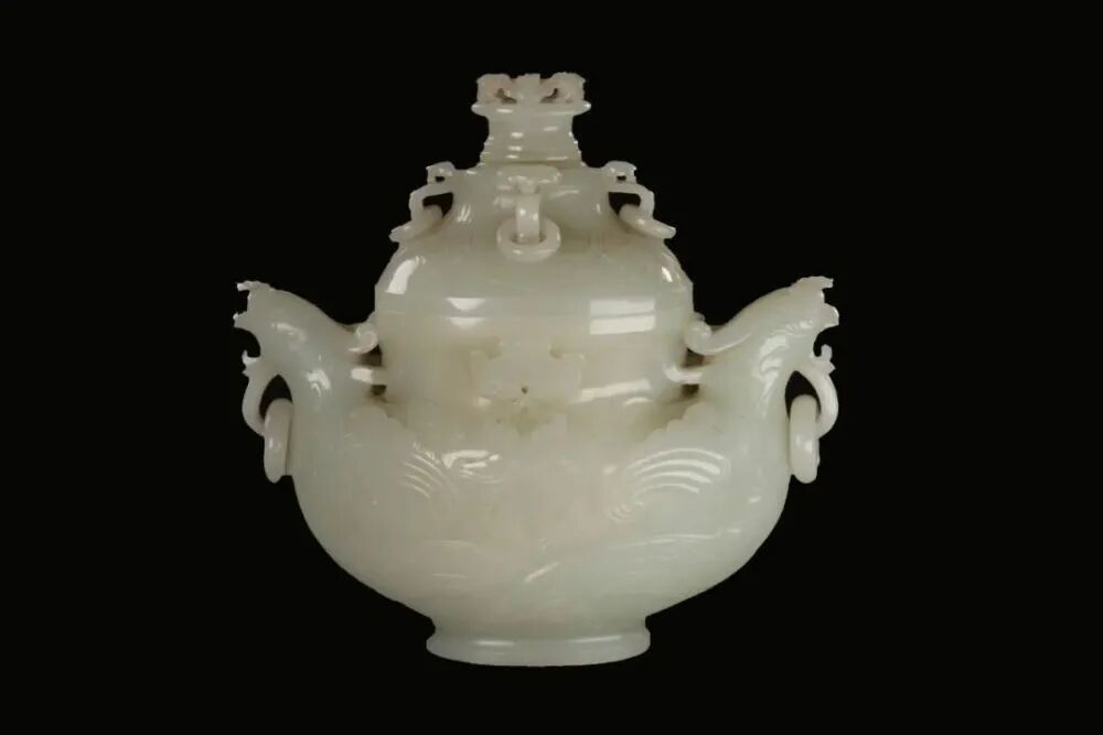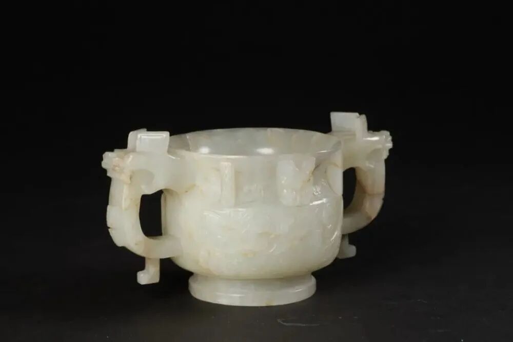 白玉“子冈”款兽面纹龙耳簋(guǐ)