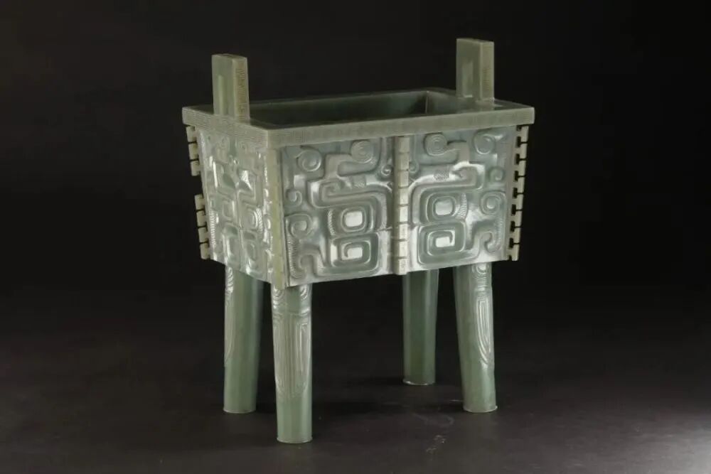 青玉“大清乾隆仿古”款兽面纹方鼎