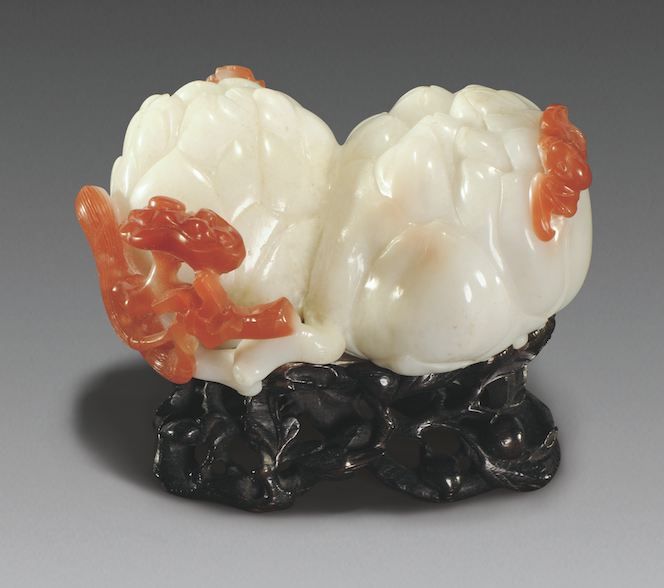 五谷丰登,节令时鲜。琢玉为果为实,可佩、可赏、可玩,造型丰富,寓意美满。石榴、莲蓬等常常象征多子多福;葫芦、佛手、仙桃等代表福寿绵长。灵巧生动的蔬果形象玉器直到今天也被人们喜爱与崇尚。