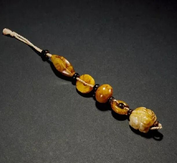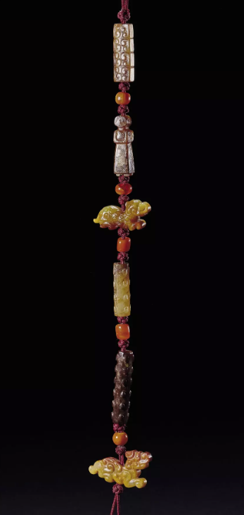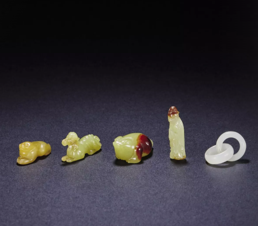 立体圆雕玉人、玉兽、蝉纹八棱玉勒串饰