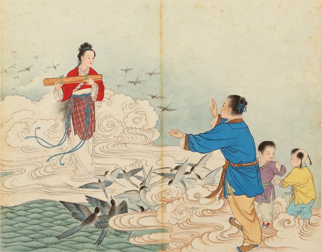 出版:《牛郎织女》,朝花美术出版社,1955年,10月