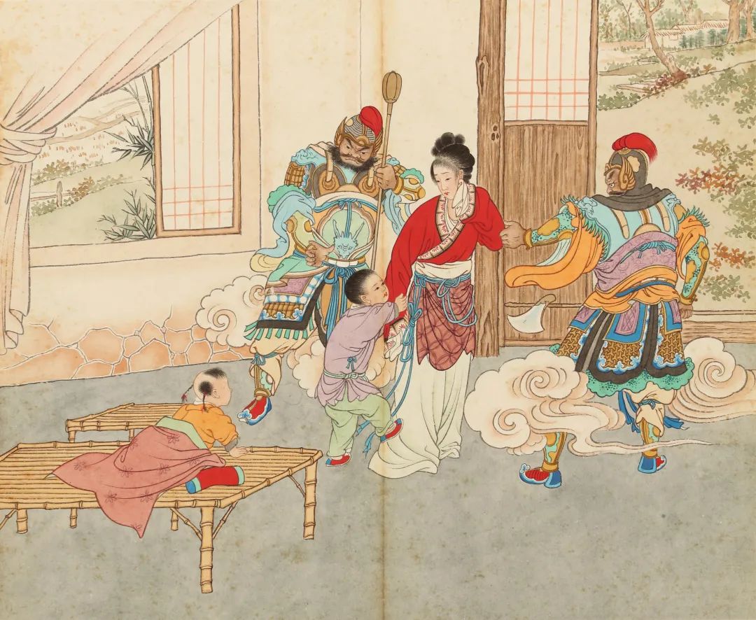 抱走裙衫求婚配,织女愤怒斥狂郎。