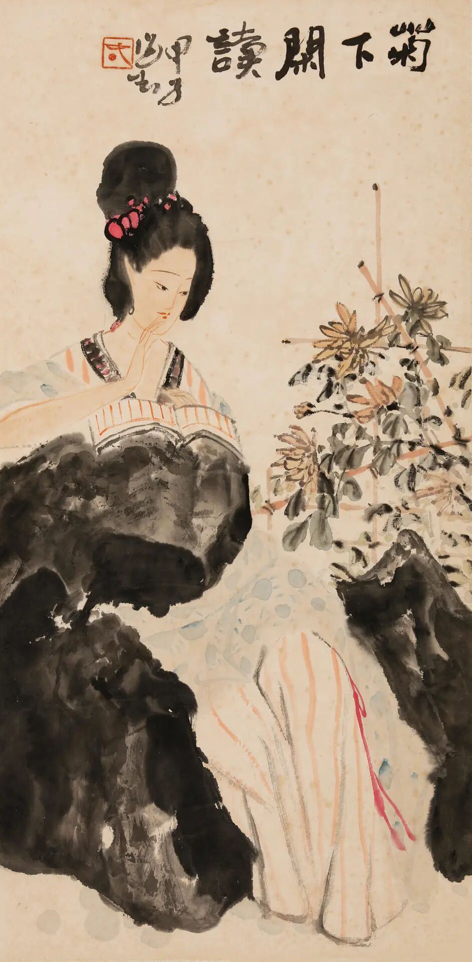 萧海春(b.1944)菊下闲读