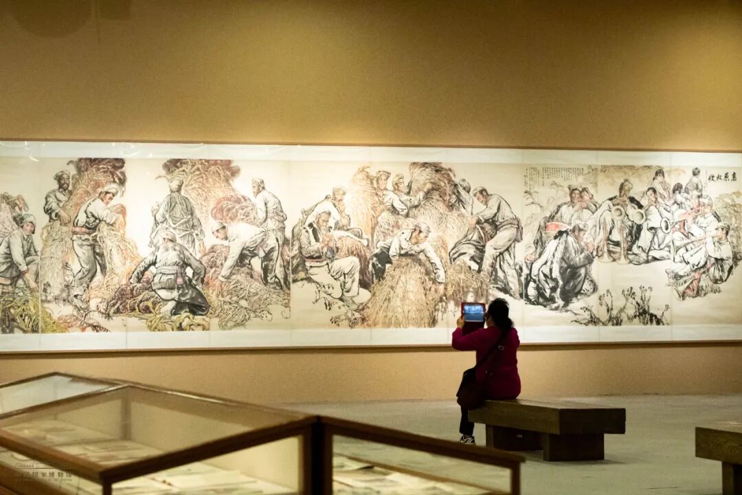 观众在刘文西画作《高原秋收》前(摄影 | 东山篱下)