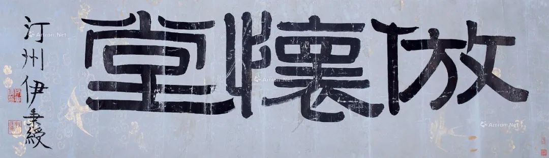 伊秉绶擅长大字隶书,且愈大愈壮,具雄杰之势。后人谓其书无唐后法,如汉魏人旧迹,颇有独到之处。其隶书笔划平直,墨色浓厚,结字方正,用笔粗细变化不大,全依布白而呈现出与众不同、迥异时尚的特色。